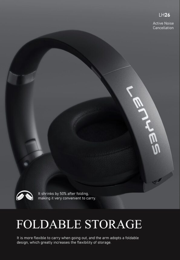 Audífono LH26 ANC con cancelación activa de ruido, Bluetooth 5.4, sonido Hi-Fi y diseño plegable